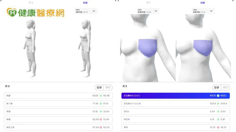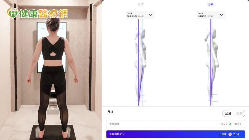 這類的AI體態管理檢測能360度精準量測,用科學數據驗證身體狀況,比對身形改變,了解前後差異化,讓每個人都看見改善的體態。