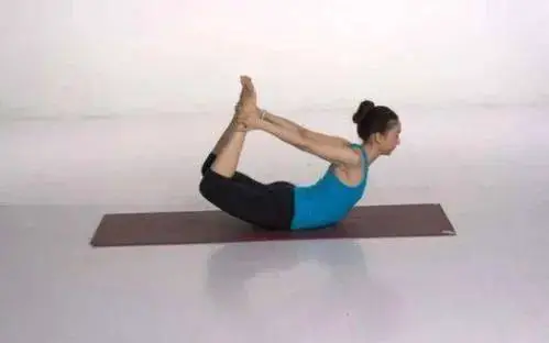 呼气时,拉伸双腿,使身体弓起,