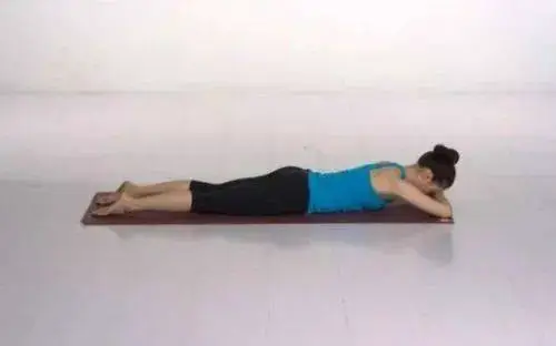 趴卧于地面,弯曲双腿,小腿向后抬起,