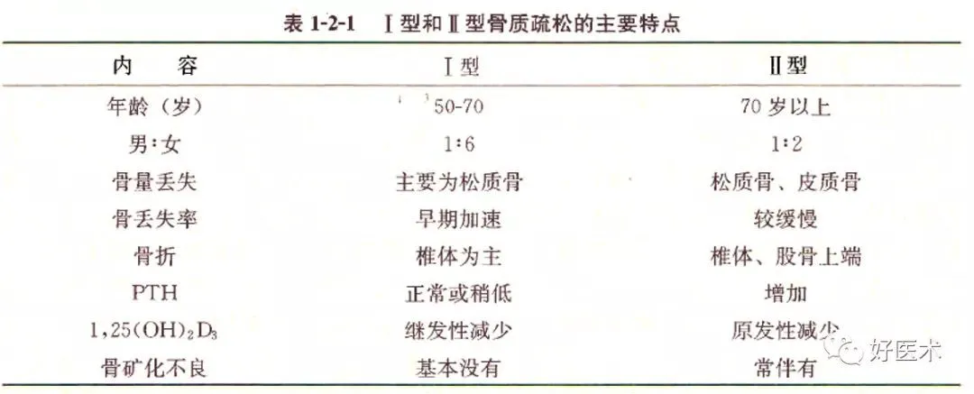 在自然衰老过程中人体组织器官系统生理性退行性改变在骨骼系统出现的骨质疏松。 Ⅰ型:妇女绝经期后骨质疏松,与雌激素不足有关。 Ⅱ型:老年性骨质疏松,与增龄衰老有关。