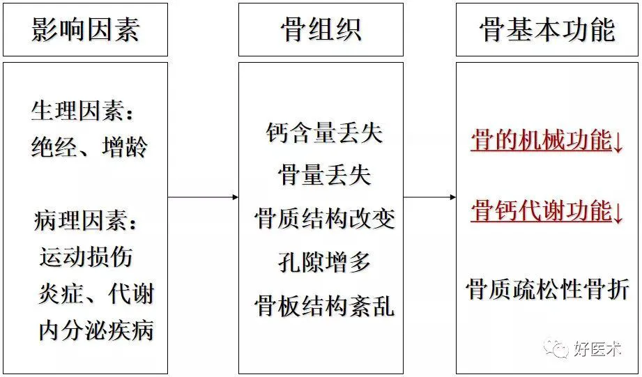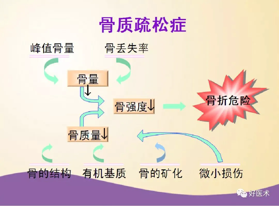 钙逐渐丢失 骨密度下降 松质骨骨小梁变细、断裂 皮质骨板层结构紊乱、多孔原发性骨质疏松分型