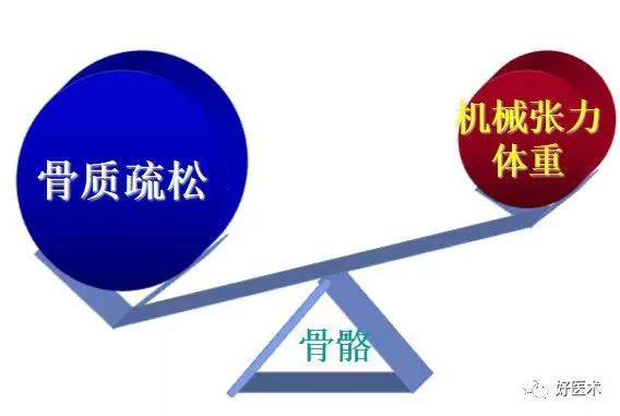 作用于骨骼的机械张力刺激减少 局部或全身的骨量减少 见于运动能力受限或功能障碍者、创伤、术后、太空飞行体重与骨密度密切相关: