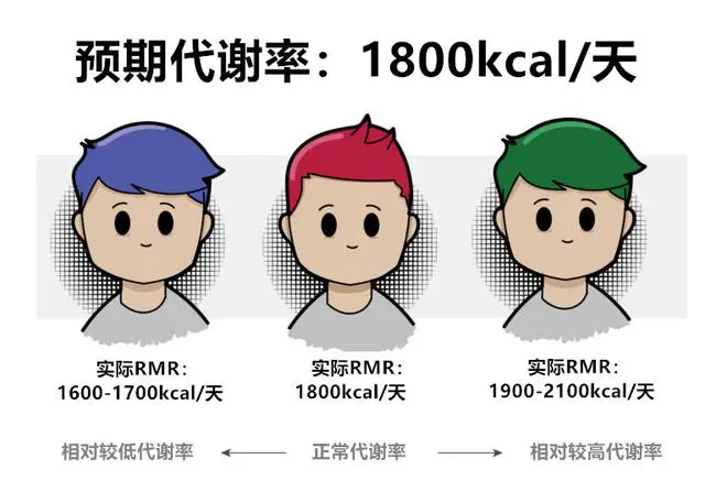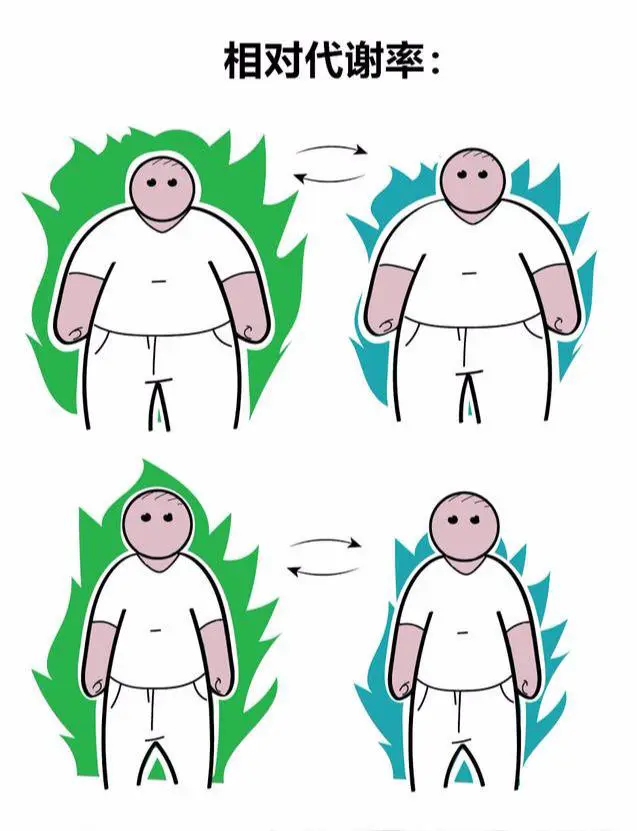 既然有绝对代谢率,那么肯定就有相对代谢率。当我们比较相同年龄、性别和身体成分的不同个体时,你会发现一些个体之间的差异。