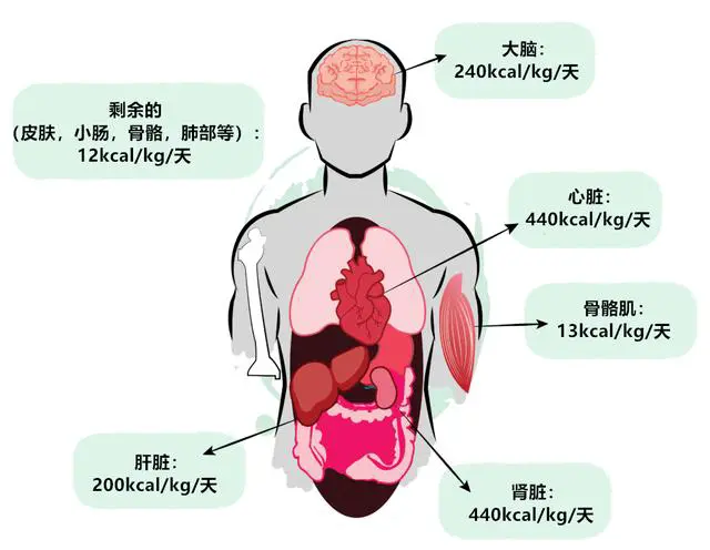这就不仅仅是肌肉了。你的大脑、心脏、肝脏、肾脏以及剩下的组织(皮肤、小肠、骨骼和肺部)都属于瘦体重,它们对RMR的贡献非常大。