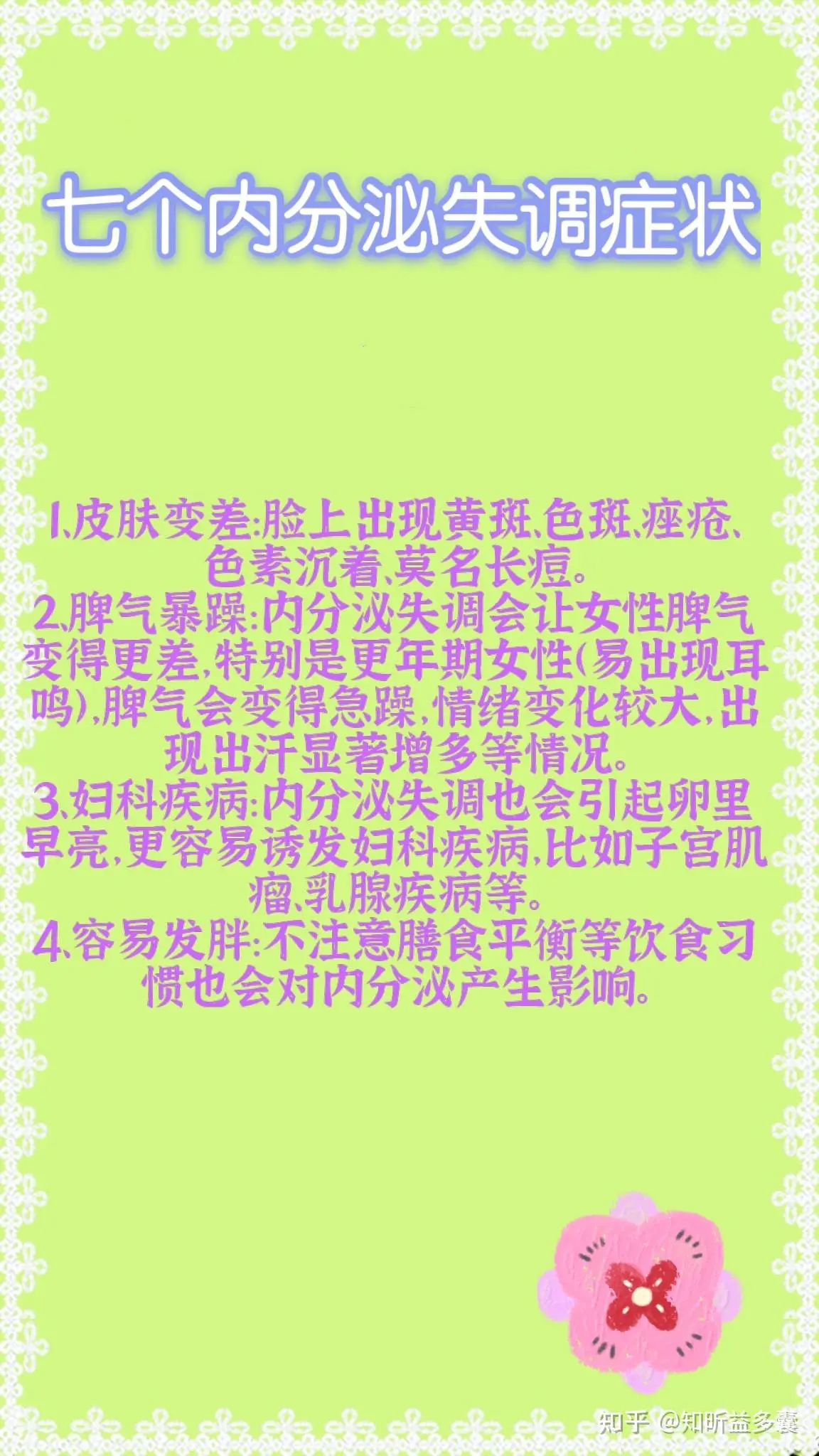 女性内分泌失调的症状主要表现在以下七个方面: