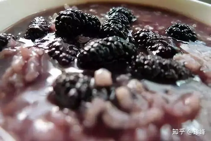 做法:大米、桑葚和黑芝麻清洗干净,三者一起捣碎,倒入砂锅里,加3碗水,煮熟,煮成糊状后加入白砂糖即可。