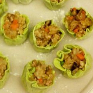 - 01冬笋去硬壳洗净煮熟;菠菜洗净,在开水锅里烫熟捞出,挤去水分,晾凉切成细末,再挤一下水,放在碗里;姜洗净去皮切成末。