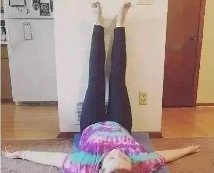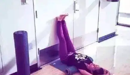 做腿向上靠墙式,为的是身体的深度放松。配上缓慢、有规律的呼吸,更是能刺激放松和消化的神经。