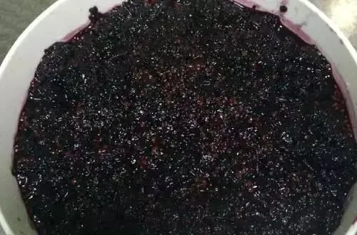 鲜桑椹2500克,洗净,用布袋盛妥,绞取汁液,文火熬成薄膏。